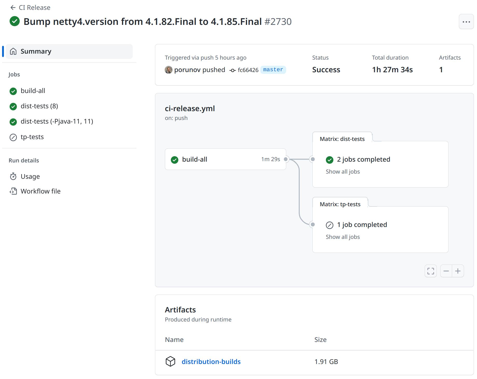 To access the distribution build bundle for any commit, please open the commit you are interested in and select its