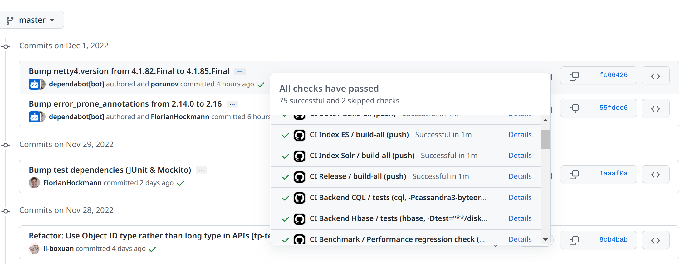 In addition to official JanusGraph releases, JanusGraph publishes releases for each commit. The commit releases allow users to use latest JanusGraph features without relying on official JanusGraph releases.