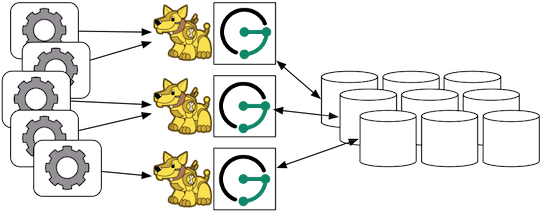 Finally, Gremlin Server can be wrapped around each JanusGraph instance defined in the previous subsection. In this way, the end-user application need not be a Java-based application as it can communicate with Gremlin Server as a client. This type of deployment is great for polyglot architectures where various components written in different languages need to reference and compute on the graph.